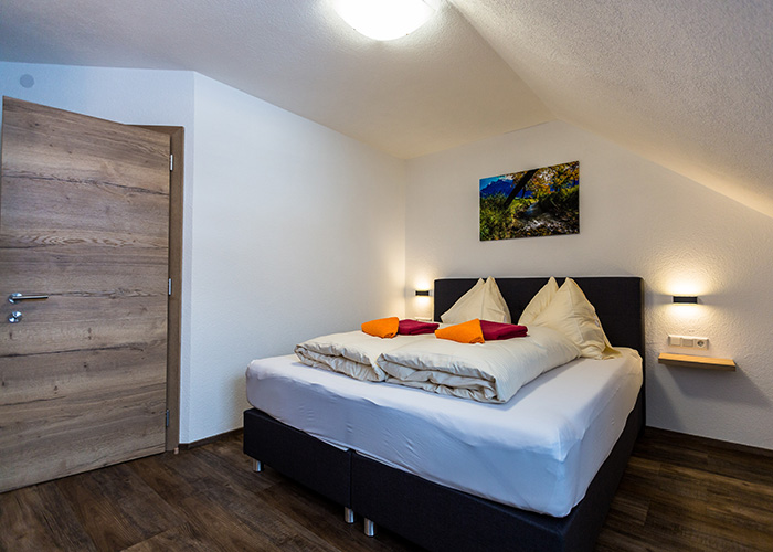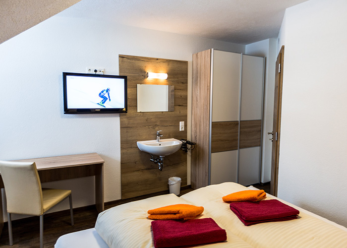 - Weiteres Schlafzimmer mit Doppelbett (Bettwäsche vorhanden), Waschbecken und Flat-TV