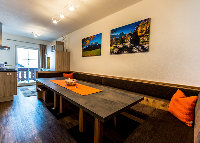 - Komplett eingerichtete Küche (Elektroherd mit Backrohr, Geschirrspüler, Kaffeemaschine (Tassimo), Mikrowelle, Toaster, Tisch- und Kochgeschirr) mit gemütlicher Sitzecke.